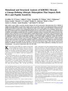 Mutational and Structural Analysis of KIR3DL1 Reveals a Lineage-Defining Allotypic Dimorphism That Impacts Both HLA and Peptide Sensitivity.
