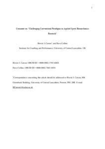 Carson, H.J., orcid iconORCID: 0000-0002-3785-606X and Collins, D. orcid iconORCID: 0000-0002-7601-0454 (2019) Comment on: “Challenging Conventional Paradigms in Applied Sports Biomechanics Research”. Sports Medicine, 49 (5). pp. 827-829. ISSN 0112-1642
