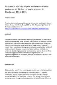 It Doesn’t Add Up: myths and measurement problems of births to single women in Blackpool, 1931–1971.