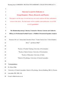 The Relationship among Cohesion, Transactive Memory Systems and Collective Efficacy in Professional Football Teams: