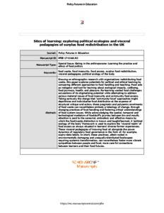Sites of learning: Exploring political ecologies and visceral pedagogies of surplus food redistribution in the UK.