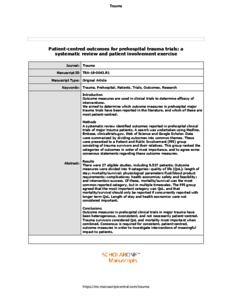 Hancox, James M, Toman, Emma, Brace-McDonnell, Samantha J and Naumann, David N (2019) Patient-centred outcomes for prehospital trauma trials: A systematic review and patient involvement exercise. Trauma, 21 (4). pp. 259-271. ISSN 1460-4086