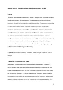 This article brings attention to a seemingly pervasive and underlying assumption in critical management education that transformative learning is a good thing. We explore this assumption through a series of narratives examining the ethics of educators overtly seeking to enable transformative learning with owner-managers in order to impact on their businesses. The focus on owner-managers is of significance in terms of transformative learning because of the centrality of the owner-manager to the delicate ecosystem that is the small and medium business. The article makes salient relational care in critical