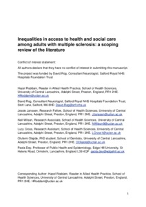 Inequalities in access to health and social care among adults with multiple sclerosis: A scoping review of the literature.