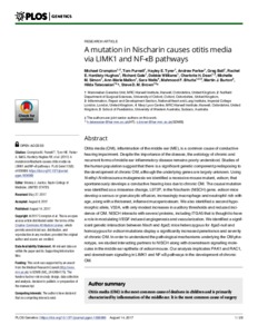 Justice, Monica J., Crompton, Michael, Purnell, Tom, Tyrer, Hayley orcid iconORCID: 0000-0002-4447-828X, Parker, Andrew, Ball, Greg, Hardisty-Hughes, Rachel E., Gale, Richard, Williams, Debbie et al (2017) A mutation in Nischarin causes otitis media via LIMK1 and NF-κB pathways. PLoS Genetics, 13 (8). e1006969. ISSN 1553-7390
