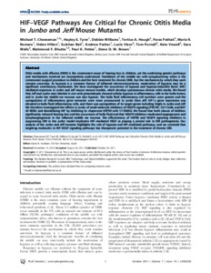 Avraham, Karen B., Cheeseman, Michael T., Tyrer, Hayley orcid iconORCID: 0000-0002-4447-828X, Williams, Debbie, Hough, Tertius A., Pathak, Paras, Romero, Maria R., Hilton, Helen, Bali, Sulzhan et al (2011) HIF–VEGF Pathways Are Critical for Chronic Otitis Media in Junbo and Jeff Mouse Mutants. PLoS Genetics, 7 (10). e1002336. ISSN 1553-7390