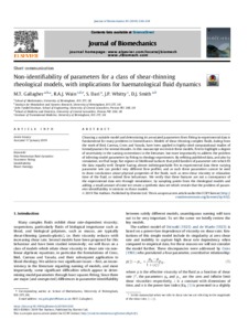 Non-identifiability of parameters for a class of shear-thinning rheological models, with implications for haematological fluid dynamics.