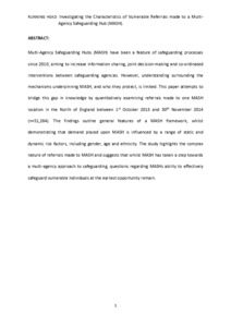Investigating the Characteristics of Vulnerable Referrals Made to a Multi-Agency Safeguarding Hub.