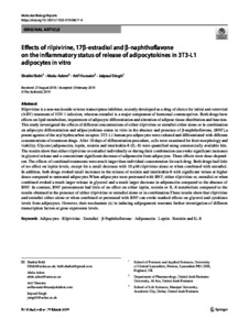 Effects of Rilpivirine, 17β-Estradiol and β-Naphthoflavone on the inflammatory status of release of adipocytokines in 3T3-L1 adipocytes in vitro.