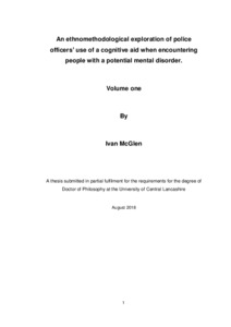 Mcglen, Ivan (2018) An ethnomethodological exploration of police officers’ use of a cognitive aid when encountering people with a potential mental disorder. Doctoral thesis, University of Central Lancashire.