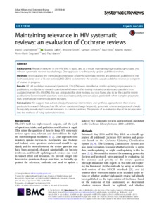 Maintaining relevance in HIV systematic reviews: an evaluation of Cochrane reviews.