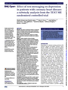 Effect of text messaging on depression in patients with coronary heart disease: a substudy analysis from the TEXT ME randomised controlled trial.