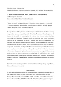 In Anglo-Saxon and Viking literature swords form part of a hero’s identity. In addition to being weapons, they represent a material agent for the individual’s actions, a physical expression of identity. In this article we bring together the evidence from literature and archaeology concerning Anglo-Saxon and Viking-age swords and argue that these strands of evidence converge on the construction of mortuary identities and particular personhoods. The placement of the sword in funerary contexts is important because it is worn close to the body, intermingling with the physical person. Swords were not just objects; they were part of people, inseparable, intermeshed, and displayed within an emotive mortuary aesthetic. Swords were embraced, placed next to the head and shoulders, and conveyed their own identities. Literature relates extraordinary events by describing familiar customs and carries part of the mortuary aesthetic. However, there are exceptions: graves like Birka 581 and Prittlewell show sword locations that contrast with the normal placement, locations which would have jarred with an observer’s experience. These exceptions would have emphasized unconventional or nuanced identities.