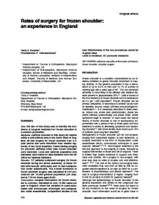 Kwaees, T.A. and Charalambous, Charalambos P. (2015) Rates of surgery for frozen shoulder: an experience in England. Muscles, Ligaments and Tendons Journal, 05 (04). pp. 276-279. ISSN 2240-4554