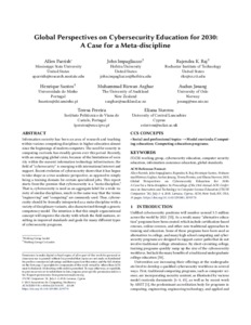 Global Perspectives on Cybersecurity Education for 2030: A Case for a Meta-discipline