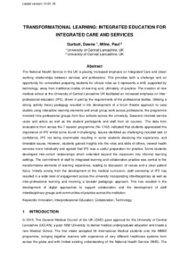 Gurbutt, Dawne and Milne, Paul (2019) Transformational learning: Integrated Education for Integrated Care and Services. INTED2019 Proceedings . pp. 382-389. ISSN 2340-1079