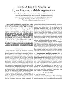 Pamboris, Andreas orcid iconORCID: 0000-0002-4877-6663, Andreou, Panayiotis orcid iconORCID: 0000-0002-6369-1094, Polycarpou, Irene and Samaras, George (2019) FogFS: A Fog File System For Hyper-Responsive Mobile Applications. In: IEEE Consumer Communications & Networking Conference, 11-14 January 2019, Las Vegas, Nevada, USA.