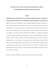 Leonidou, Leonidas, Kvasova, Olga, Christodoulides, Paul and Tokar, Sergii (2019) Personality traits, consumer animosity, and foreign product avoidance: The moderating role of individual cultural characteristics. Journal of International Marketing . ISSN 1069-031X