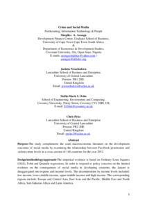 Findings-From OLS and Tobit regressions, there is a negative relationship between Facebook penetration and crime. However, Quantile regressions reveal that the established negative relationship is noticeable exclusively in the 90th crime decile. Further, when the dataset is decomposed into regions and income levels, the negative relationship is evident in the Middle East and North Africa (MENA) while a positive relationship is confirmed for sub-Saharan Africa. Policy implications are discussed.