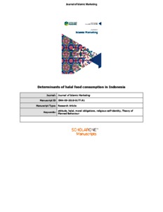 Practical implications: The findings can be used by the government and food producers to target specific factors especially positive attitudes, RSI and moral obligations. Indonesia Ulama Council (Majelis Ulama Indonesia), food industry and the media play a critical role in sustaining consumers’ positive attitude towards halal food consumption. It is critical for food manufacturers to tailor their marketing strategies and consider promoting Islamic dietary rules when promoting their food products.
