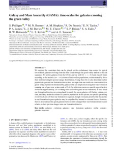 Phillipps, S, Bremer, M N, Hopkins, A M, De Propris, R, Taylor, E N, James, P A, Davies, L J M, Cluver, M E, Driver, S P et al (2019) Galaxy And Mass Assembly (GAMA): Timescales for galaxies crossing the green valley. Monthly Notices of the Royal Astronomical Society, 485 (4). pp. 5559-5572. ISSN 0035-8711