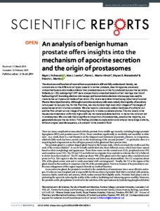An analysis of benign human prostrate offers insight into the mechanism of apocrine secretion and the origin of prostasomes.