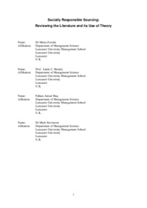 Bell, Marta, Hendry, Linda C., Huq, Fahian Anisul and Stevenson, Mark (2015) Socially responsible sourcing: reviewing the literature and its use of theory. International Journal of Operations & Production Management, 35 (1). pp. 60-109. ISSN 0144-3577