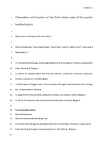 Orientation and location of the finite helical axis of the equine forelimb joints.