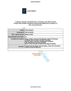 Looking, seeing and believing in autism: Eye movements reveal how subtle cognitive processing differences impact in the social domain.
