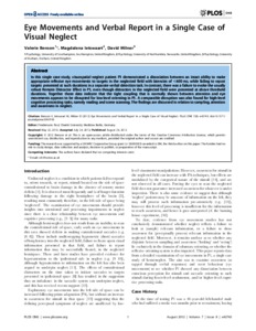 In this single case study, visuospatial neglect patient P1 demonstrated a dissociation between an intact ability to make appropriate reflexive eye movements to targets in the neglected field with latencies of <400 ms, while failing to report targets presented at such durations in a separate verbal detection task. In contrast, there was a failure to evoke the usually robust Remote Distractor Effect in P1, even though distractors in the neglected field were presented at above threshold durations. Together those data indicate that the tight coupling that is normally shown between attention and eye movements appears to be disrupted for low-level orienting in P1. A comparable disruption was also found for high-level cognitive processing tasks, namely reading and scene scanning. The findings are discussed in relation to sampling, attention and awareness in neglect.