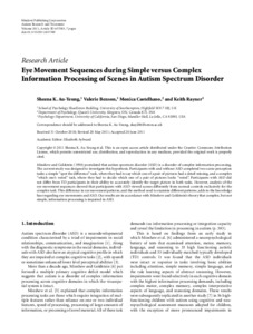 Au-Yeung, Sheena K., Benson, Valerie orcid iconORCID: 0000-0002-0351-4563, Castelhano, Monica and Rayner, Keith (2011) Eye Movement Sequences during Simple versus Complex Information Processing of Scenes in Autism Spectrum Disorder. Autism Research and Treatment, 2011 . ISSN 2090-1925