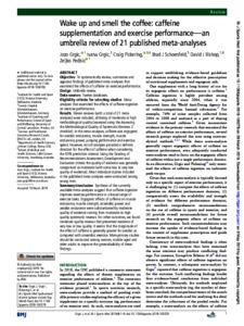Grgic, Jozo, Grgic, Ivana, Pickering, Craig, Schoenfeld, Brad J, Bishop, David J and Pedisic, Zeljko (2019) Wake up and smell the coffee: caffeine supplementation and exercise performance-an umbrella review of 21 published meta-analyses. British journal of sports medicine . ISSN 0306-3674