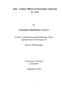 Manoharan, Gunasekar (2011) Anti – Cancer effects of Momordica charantia in- vitro. Doctoral thesis, University of Central Lancashire.