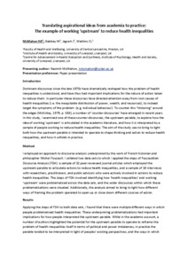 Translating aspirational ideas from academia to practice: The example of working ‘upstream’ to reduce health inequalities.