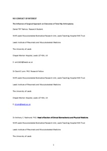 Tadross, TSF, Lunn, DE, Redmond, AC and Chapman, Graham orcid iconORCID: 0000-0003-3983-6641 (2016) The influence of surgical approach on outcomes of total hip arthroplasty. Orthopaedics and Trauma, 30 (3). pp. 247-253. ISSN 1877-1327