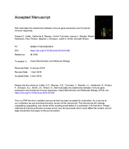 Diet modulates the relationship between immune gene expression and functional immune responses.