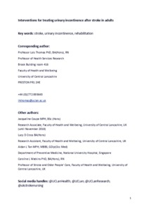Interventions for treating urinary incontinence after stroke in adults.