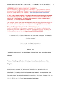 A scattered CAT: A critical evaluation of the consensual assessment technique for creativity research.