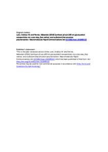 Synthesis of Sub-100 nm Glycosylated Nanoparticles via a One Step, Free Radical, and Surfactant Free Emulsion Polymerization.