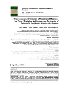Knowledge and utilization of traditional medicine for type 2 diabetes mellitus among residents of Pakuri (St Cuthbert's Mission) in Guyana.