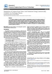 Separation of Cations from Nitric Acid Solutions Using Commercially Available Ion Exchange Resins.