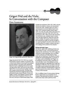 Grigori Frid and the Viola: In Conversation with the Composer.