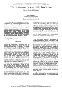 The Golovanov Case in 1928, Poputchiki Recent Archival Findings.