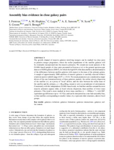 The growth channel of massive galaxies involving mergers can be studied via close pairs as putative merger progenitors, where the stellar populations of the satellite galaxies will be eventually incorporated into the massive primaries. We extend our recent analysis of the GAMA-based sample of close pairs presented in Ferreras et al. to the general spectroscopic dataset of SDSS galaxies (DR14), for which the high S/N of the data enables a detailed analysis of the differences between satellite galaxies with respect to the mass of the primary galaxy. A sample of approximately two thousand satellites of massive galaxies is carefully selected within a relatively narrow redshift range (0.07<z<0.14). Two main parameters are considered as major drivers of the star formation history of these galaxies, namely: the stellar velocity dispersion of the satellite (σ), as a proxy of “local” drivers, and the ratio between the stellar mass of the satellite and the primary, μ = MSAT/MPRI, meant to serve as an indicator of environment. Consistently with the independent, GAMA-based work, we find that satellites around the most massive primaries appear older, at fixed velocity dispersion, than satellites of lower mass primaries. This trend is more marked in lower mass satellites (σ∼100 km s−1), with SSP-equivalent age differences up to ∼0.5 Gyr, and can be interpreted as a one-halo assembly bias, so that satellites corresponding to smaller values of μ represent older structures, akin to fossil groups.
