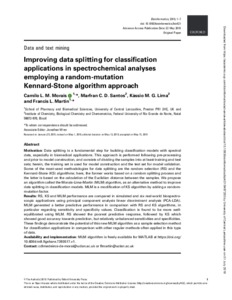 Motivation: Data splitting is a fundamental step for building classification models with spectral data, especially in biomedical applications. This approach is performed following pre-processing and prior to model construction, and consists of dividing the samples into at least training and test sets; herein, the training set is used for model construction and the test set for model validation. Some of the most used methodologies for data splitting are the random selection (RS) and the Kennard-Stone (KS) algorithms; here, the former works based on a random splitting process and the latter is based on the