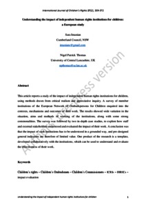 This article reports a study of the impact of independent human rights institutions for children, using methods drawn from critical realism and appreciative inquiry. A survey of member institutions of the European Network of Ombudspersons for Children enquired into the contexts, mechanisms and outcomes of their work. The results showed wide variation in the situation, aims and methods of working of the institutions, along with some strong commonalities. The survey was followed by two in-depth case studies, to explore how staff and external stakeholders understood and evaluated the impact of their work. A conclusion was that the impact of such institutions has to be understood in a grounded way, and pre-designed general indicators are therefore of limited value. One product of the research is a template, developed collaboratively with the institutions, which can be used to understand and evaluate the effectiveness of their work.