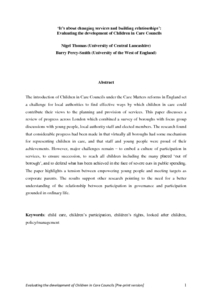 'It's about changing services and building relationships': evaluating the development of Children in Care Councils.