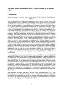 This paper offers original and novel research within the sport-tourism literature by taking a futures perspective and applying a scenario narrative approach. The paper offers original insight into attitudes towards sport hunting and its future potential, moving away from its traditions of hunting animals to hunting humans. This paper encourages debate around a taboo-subject, by drawing on a popular past-time, sport. Death is also universal, and by aligning the topic with sport and as a hunting activity, this paper is offering original approaches to addressing difficult questions that need to be asked.