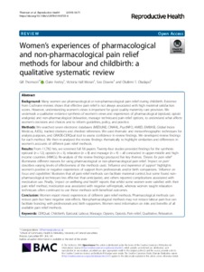 Women’s experiences of pharmacological and non-pharmacological pain relief methods for labour and childbirth: A qualitative systematic review.