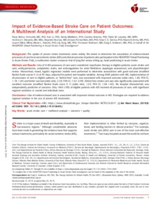 Impact of evidence-based stroke care on patient outcomes: a multilevel analysis of an international study.